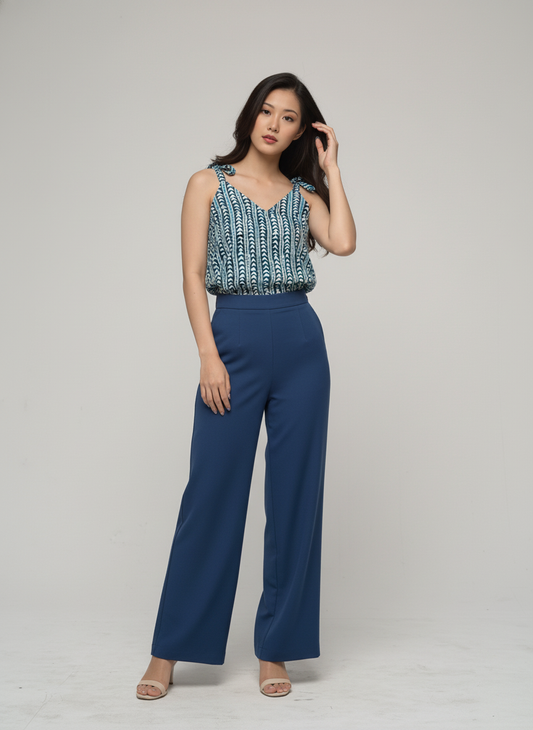 Women’s Batik Top – Navy Meadow Tie-Strap Peplum