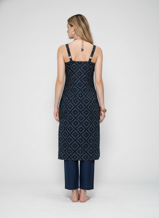 Women’s Batik Kurti – Indigo Tile Sleeveless