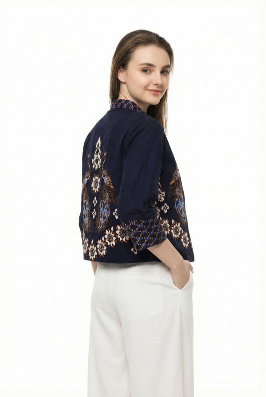 Women's Batik Jacket - Midnight Peacock